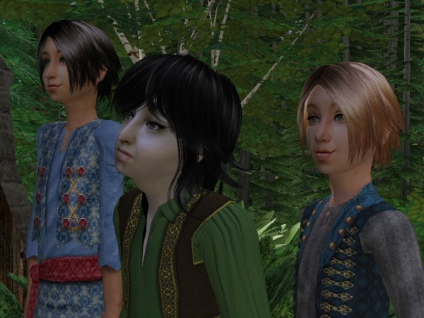By the time she pronounced the word “Go”, Shosudin had already leapt up over the brush and gone thumping across the clearing on his grungy white feet. Vash had stiff shoes and fancy pants and short legs to hinder him, but he was still second to reach the gate. Though the tallest and oldest, Tashnu was also the most timid, and he came up last, whimpering, “Wait!”
