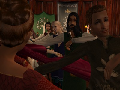 “I’ve always envied the ladies who have the good fortune of being able to dance with Wyn,” Alred said. “Though he’s not the liveliest one of the bunch,” he added, leaning over to glance down the line towards Sir Sigefrith’s prancing at the far end.