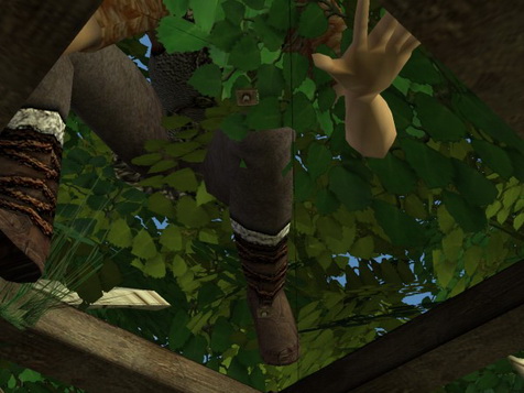 The boy swung his body down between the beams and dropped to the floor before her. His clothes were strange enough to make her think of elves—