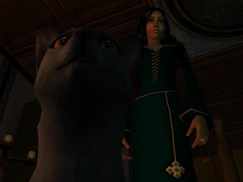 As soon as the door was cracked wide enough for her bulging belly, Sweetdew trotted in and heaved herself down at Eithne’s feet like a little guardian lion. Eithne did not think this a promising sign.