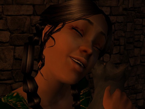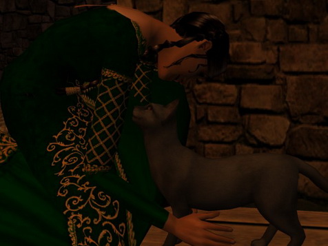Sweetdew settled her haunches upon the hem of Eithne’s gown and stared quizzically up at her.