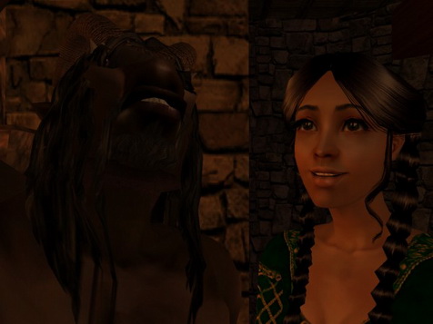 His living face was very ugly, and his big eyes were hidden behind his matted hair – and nevertheless Eithne thought she detected a sense of humor in the beast. His mouth was too hideous for her to be certain, but she thought he was trying to hide a smile.