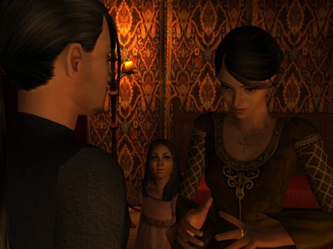 “Domnall’s the cousin of you?” Maire asked dazedly. “He’s visiting our father at present…” She turned her crescent-moon face aside, glancing back over her shoulder at the tall man who lounged drunkenly or sleepily on the couch behind her.