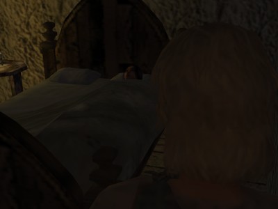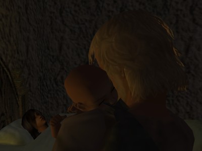 Alwy walked around the bed with the baby and inspected him next to the candle. Alwy wasn’t very quick about counting, but the fingers and toes looked about right. He took a peek in the little diaper to make sure that it really was a boy – it was.