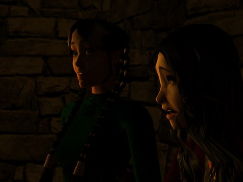 Lasrua wilted with sudden weariness. She put out her hand, but her fingers slipped ungrasping over the rough stones of the wall. Her snow-matted hair swung away from her cheek and smacked her sharply as she swayed, startling her to attention just as Eithne skittered around the corner.