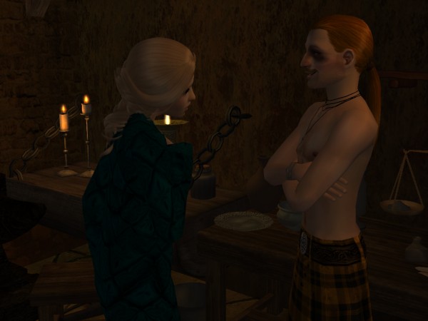 “That secretary! Addonwy!” He paused to pronounce an impressive Gaelic curse before continuing in Norse. “Course I called his race a race of women,” he confided. “But you have to admit I was at least half right!” He grinned and winked at her out of his right eye.
