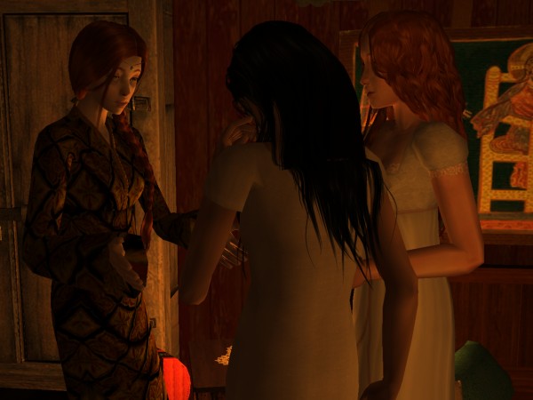 Sadb fluffed out her hair and went to crawl onto the bed behind Uallach and Cinder. The cat had already decided the crisis was over, and had curled up to take a nap before commencing his nightly prowl.