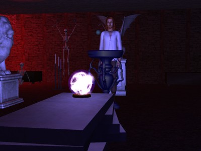 He noticed a pedestal in the middle of the room, surrounded by grim statues. But what caught his eye was a glassy sphere that hovered over its surface, seemingly unsupported by anything.