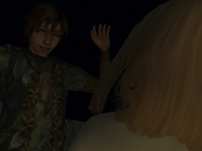 “Don’t like the dark, do you? You’ll feel better once we have a fire. May I leave you here while I go get wood and a rabbit? I assure you, it’s safe here. I sleep here quite often.”