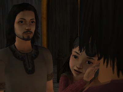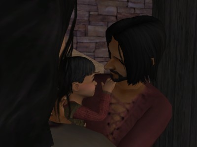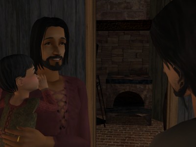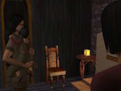 Egelric kissed his lady and said, “I’m simply airing the place out and cleaning it up a little. It’s so damp in here it’s practically mossy. Hallo, my wee girlie!”