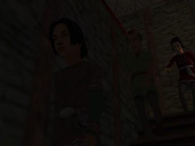 Fortunately, the torchlight from the other corridor lit up the end of this, and he was able to run towards the light, and then around the corner towards the stairs, just as he saw Bertie reach them.