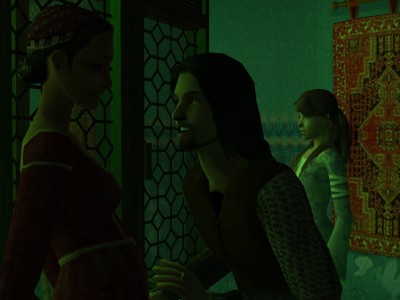 Meanwhile Leila was putting away her embroidery and standing – but to do so she clutched at the arm of the couch and pushed herself awkwardly to her feet. And when she was quite standing, Eadgith thought she could see why – and any doubts remaining were dispelled when her father bent and knocked gently on her belly and asked, “Anyone home?”