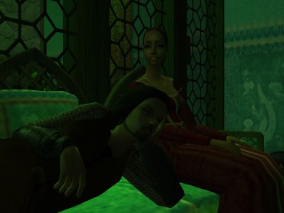 He was stretched out on the couch next to Leila, his head propped up on one hand, and he stared sullenly through half-closed lids into the few embers that remained of the fire. He was rather more drunk than usual, and when he drank alone he was seldom merry.