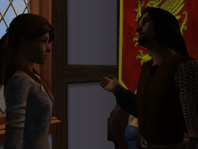 “Perhaps he doesn’t want me too near,” he winked. “Will be a bit difficult to savor this tasty morsel if I am constantly plucking her from his jaws.” He gave her cheek a sharp pinch.