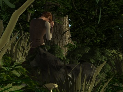 She did not have to go far to find it. She nearly fell back onto her haunches in surprise when she ran into the cloud of scent. It was musty from being steeped in dew and dried in the sun several times over, but the girl had most definitely been here. She had certainly sat in the grass, and the ragged bark of the willow was clothed in the very odor of her skin.