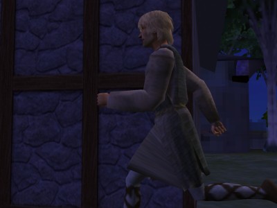 Outside, on his way back to the pen, he heard another sound. It sounded like… somone pounding on wood. Someone crying out. It sounded like it was coming from behind the woods, up towards Egelric’s farm. It sounded bad. And so Alwy began to run.