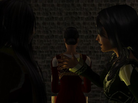Flann said something to her sister that he supposed was in the Scot language, and the two of them engaged in a brief, hushed argument. Catan seemed to win, and she led her sister up to meet him. Her sister did not, however, offer her hand to be kissed as Cat had.