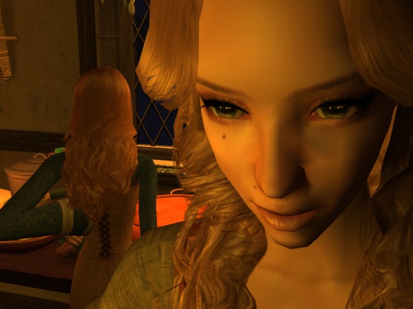 “Osh wouldn’t knock,” Kraaia shrugged and leapt up in a whirl of blonde hair. “I’ll go see!”