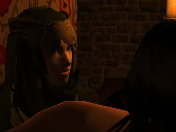 Aengus grinned through his grimace. Lasrua! At his bedside! Making a questionable joke! He could not let this opportunity pass him by. He mulled over a broad hint about how he might be seen at his best… but he was conscious enough of his present condition to fear he would only be crude.