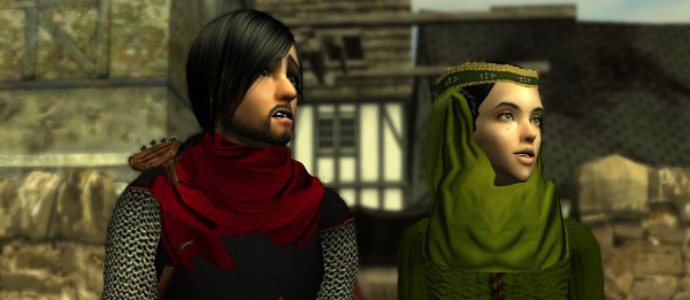 Aengus answered, “Does he! We’re from Lothere! Fancy, meeting you here!” He reached past Leofric to take the woman’s hand. “Pleased to meet you, love. I’m Sir Aengus, son of Colin, and—ah!”