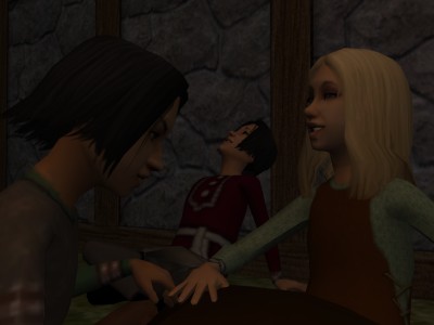 Iylaine sighed again, dramatically, and said, “Father Brandt is saying that the roof is leaking on the side of the catacomb stairs, and His Majesty is saying that he will send a man to fix it, and blah blah blah…”