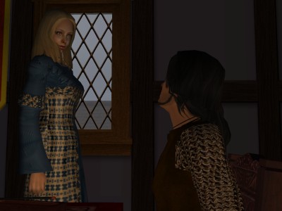 “Oh!” She hurled her embroidery onto the bench beside her. “Now I shall have to start over. What do you want, Sigefrith?” She stood and glowered at him.
