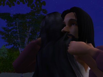 She twisted one hand in his long hair and hissed, “And he grabbed my hair in one hand, and held me with the other. And I pounded and pounded on him with my fists, and I don’t think he even noticed. And he kissed me. Hard!”