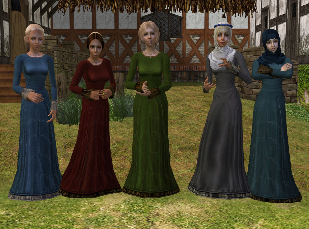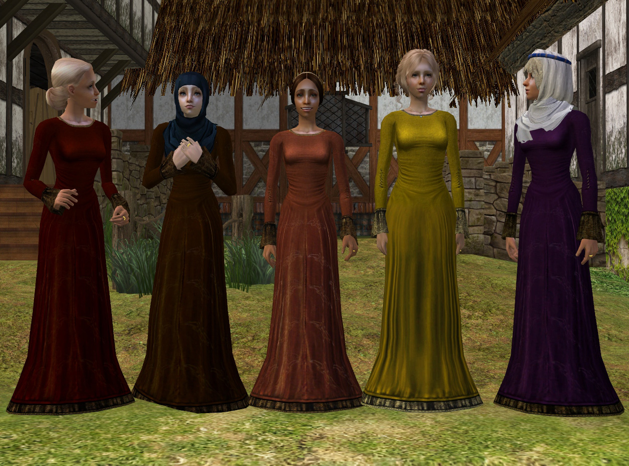 Sherahbim’s “The Lady” gown is one of the best bliauts out there, so I wanted it in lots of medieval colors. There are already other recolors of the original gown, so I made a few edits to the outfit to add variety. I also put it on a different mesh.